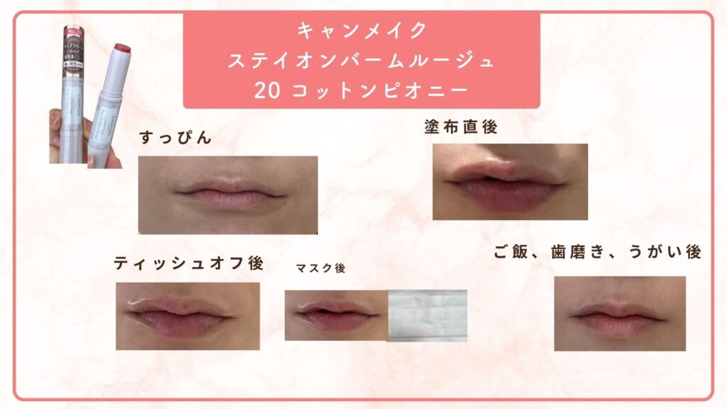 ①キャンメイク「ステイオンバームルージュ 20 コットンピオニー」638円