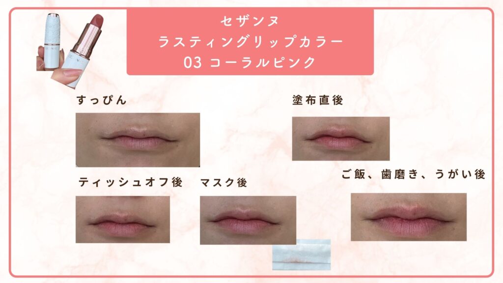 → ティントで落ちにくい、自然なコーラル系、ツヤ感◎