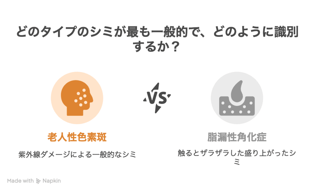 少し盛り上がったようなシミで、「年齢斑」とも呼ばれます。触るとザラザラしていることが特徴です。