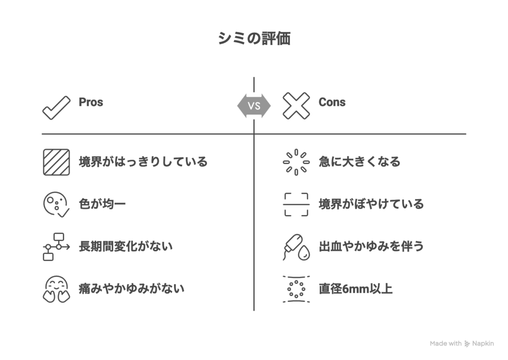 介護福祉士として多くの先輩方を見てきましたが、「大丈夫だろう」と思っていたシミが実は別の疾患だった、というケースもあります。心配な時は遠慮なく専門医に相談してくださいね。