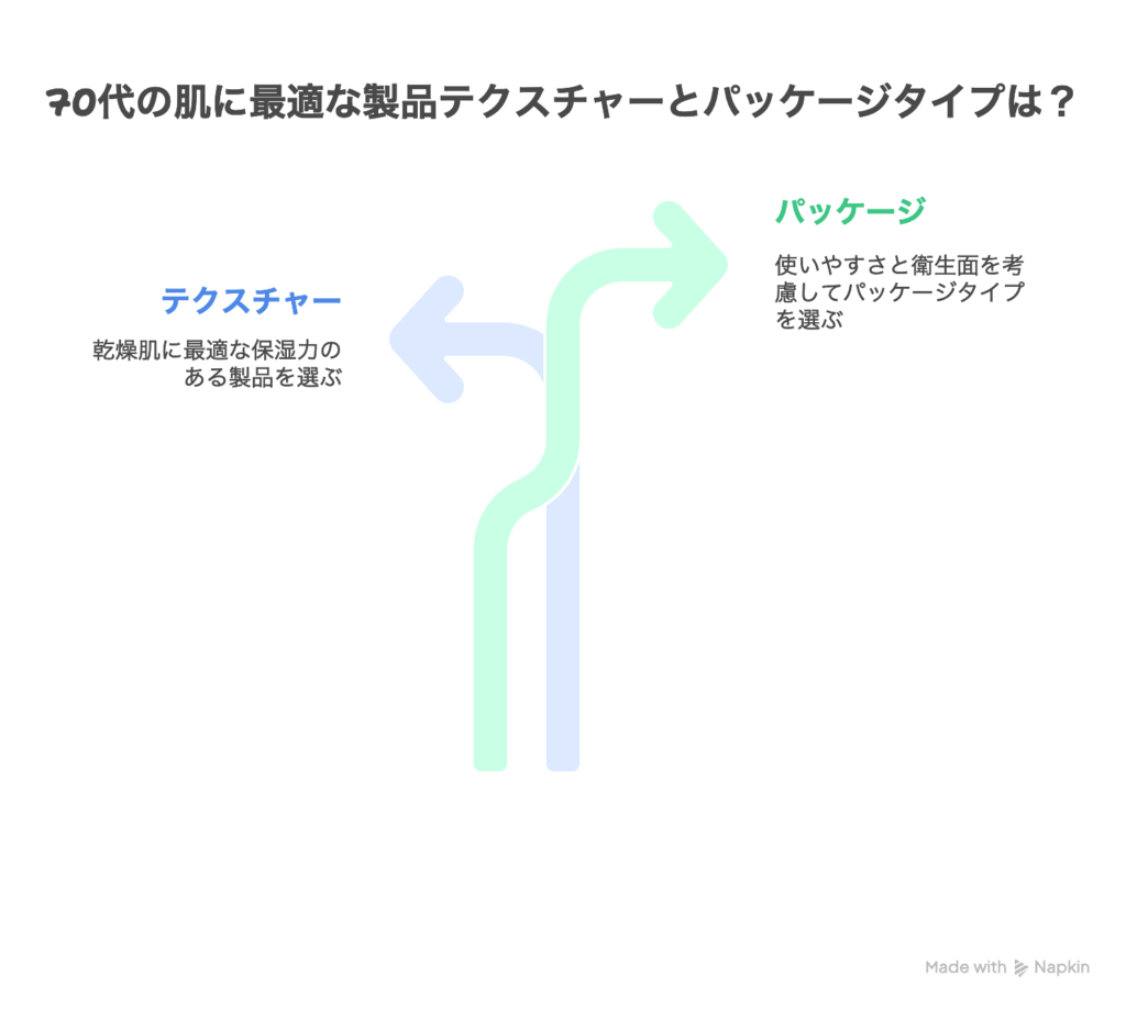 70代の先輩のお肌は乾燥しやすいので、保湿力の高いテクスチャーを選びましょう!