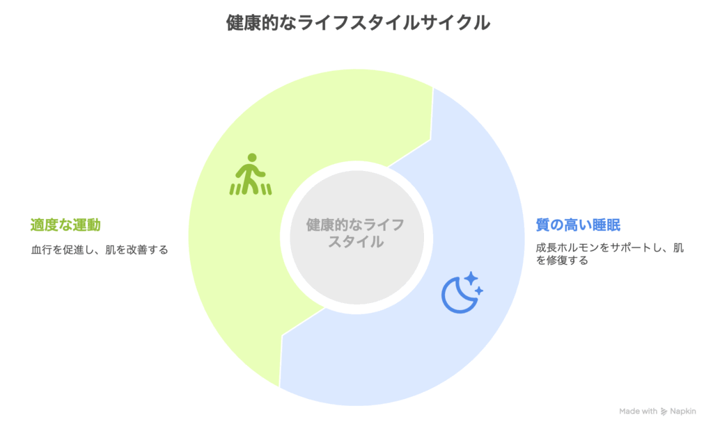 - 排出機能の低下:ターンオーバーが遅くなり、メラニンが肌表面に留まりやすい