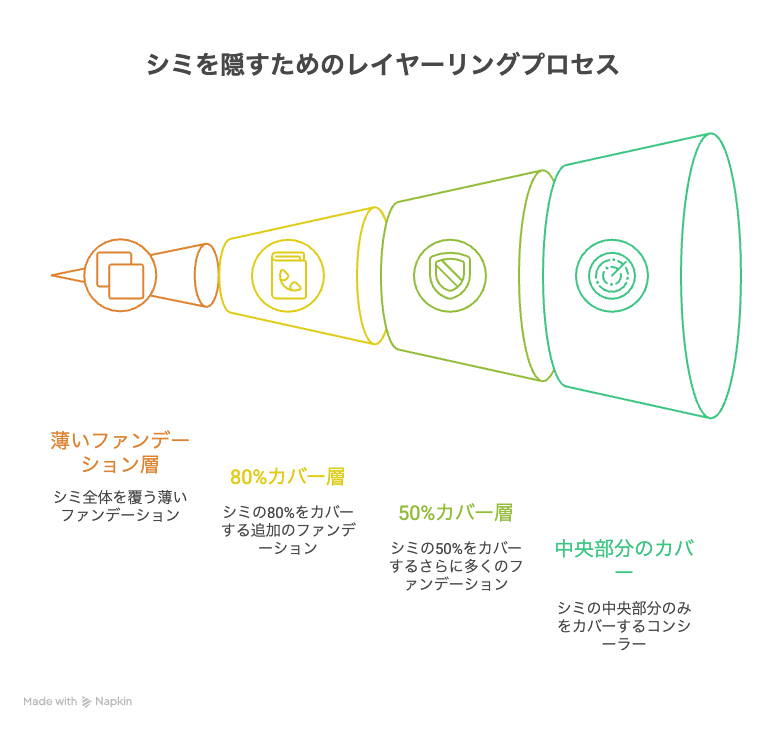 - 何層にも重ねて、徐々にカバー力を上げていく